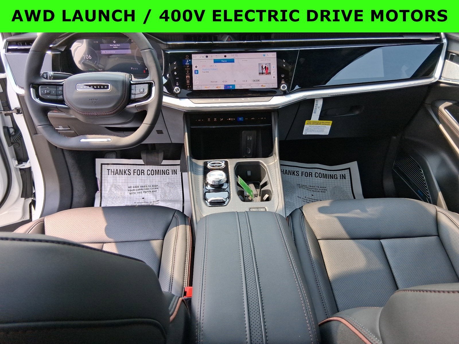 Featured Equipment: Wagoneer S Launch Edition 400V 4XE, 4D Sport Utility, Electric Motor, 1-Speed Automatic, 4WD, Bright White Clearcoat, Global Black w/Neo Ultra Lux II Seats, 115V Auxiliary Power Outlet, 19 Speakers, Alloy wheels, AM/FM radio: SiriusXM with 360L, Apple CarPlay/Android Auto, Auto High-beam Headlights, Automatic temperature control, Digital Rearview Mirror, Front fog lights, Front Passenger Interactive Display, Fully automatic headlights, Hands Free Power Liftgate, Heads-Up Display, Heated front seats, Heated rear seats, Heated steering wheel, Illuminated entry, Luxury Group, Navigation System, Neo Ultra Lux III Seats, Panic alarm, ParkView Rear Back-Up Camera, Power Liftgate, Power moonroof, Premium audio system: UConnect 5, Quick Order Package 25E, Radio: Uconnect 5 Nav w/12.3 Display, Rain sensing wipers, Roll-Up Tonneau Cover, Security system, Speed-Sensitive Wipers, Two Tone Paint Group, Ventilated front seats, Ventilated rear seats, Wheels: 20 x 8.5 Painted Aluminum Design 1.