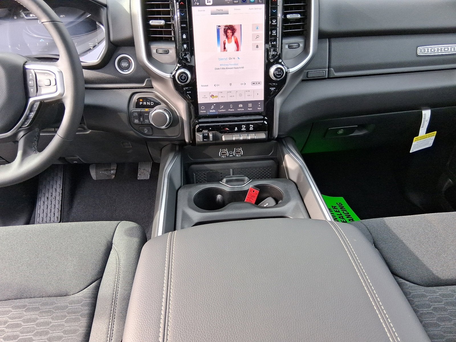 - BIG HORN LEVEL 2 EQUIPMENT GROUP -inc: SiriusXM Radio Service Power Adjustable Pedals Leather Wrapped Steering Wheel 12 Touchscreen Display Glove Box Lamp Auto Power-Folding Mirrors 115V Auxiliary Rear Power Outlet Media Hub w/2 Charge Only USBs Heated Front Seats Security Alarm Black Premium Power Mirrors Premium Overhead Console 9 Amplified Speakers w/Subwoofer Disassociated Touchscreen Display Body Color Fender Flares Remote Tailgate Release 115V Auxiliary Power Outlet LED Dome Lamp w/On/Off Switch Universal Garage Door Opener 2nd Row In Floor Storage Bins Sun Visors w/Illuminated Vanity Mirrors LED Footwell Lighting Rear Window Defroster Rear View Auto Dim Mirror Rear Power Sliding Window GPS Navigation Overhead LED Lamps Wheels: 20 x 9 Aluminum Chrome Clad (WRK) Tires: 275/55R20 OWL All Season Bridgestone Brand Tires Auto Dim Exterior Driver Mirror SiriusXM w/360L Connected Travel & Traffic Services Heated Steering Wheel Configurable Drive Mod