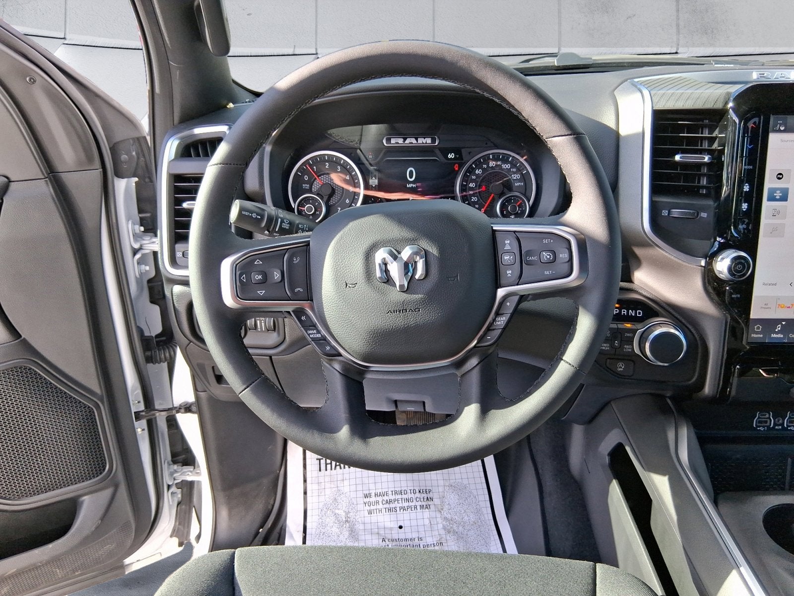 Featured Equipment: 1500 Big Horn/Lone Star, 4D Crew Cab, HEMI 5.7L V8 Multi Displacement VVT eTorque, 8-Speed Automatic, 4WD, Bright White Clearcoat, Black w/Cloth Bucket Seats or Cloth Bench Seat or Cloth Bench Seat or Deluxe Cloth Bucket Seats, 115V Auxiliary Power Outlet, 115V Auxiliary Rear Power Outlet, 12 Touchscreen Display, 3 Rear Seat Head Restraints, 4 Way Front Headrests, 400W Inverter, 48V Belt Starter Generator, 4G LTE Wi-Fi Hot Spot, Accent Color Door Handles, Accent Color Premium Power Mirrors, Accent Color Tailgate Handle, Alloy wheels, Anti-Spin Differential Rear Axle, Apple CarPlay, Apple CarPlay/Android Auto, Auto High-beam Headlights, Auto Power-Folding Mirrors, Auto-Dimming Exterior Driver Mirror, Auto-Dimming Rear-View Mirror, Big Horn Level 2 Equipment Group, Black Exterior Mirrors, Black Exterior Truck Badging, Black Headlamp Bezels, Black Interior Accents, Black Painted Exterior Mirrors Caps, Black Premium Power Mirrors, Black Tail Lamp Bezels, Body Color Fender Flares, Body Color Front Bumper, Bucket Seats, Center Console Parts Module, Cluster 7.0 TFT Color Display, Configurable Drive Mode, Connectivity - US/Canada, Convex Wide-Angle Exterior Mirror Insert, Deluxe Cloth Bucket Seats, Disassociated Touchscreen Display, Exterior Mirrors Courtesy Lamps, Front fog lights, Front Seat Back Map Pockets, Full Length Floor Console, Glove Box Lamp, Google Android Auto, GPS Antenna Input, GPS Navigation, Grille Black Surround Black Mesh, HD Radio, Heated Front Seats, Heated Steering Wheel, Integrated Center Stack Radio, Leather Wrapped Steering Wheel, LED Footwell Lighting, Manual Adjust 4-Way Front Passenger Seat, Mopar Black Tubular Side Steps, Night Edition, Overhead LED Lamps, ParkView Rear Back-Up Camera, Power 2-Way Driver Lumbar Adjust, Power Adjust 8-Way Driver Seat, Power Adjustable Pedals, Premium Overhead Console, Quick Order Package 27Z Big Horn, RAM Grille Badge - Black, Rear 60/40 Folding Seat, Rear Center Armrest, Rear Power Sliding Window, Rear Window Defroster, Remote Tailgate Release, Security Alarm, SiriusXM Radio Service, Steering Wheel Mounted Audio Controls, Universal Garage Door Opener, USB Host Flip.