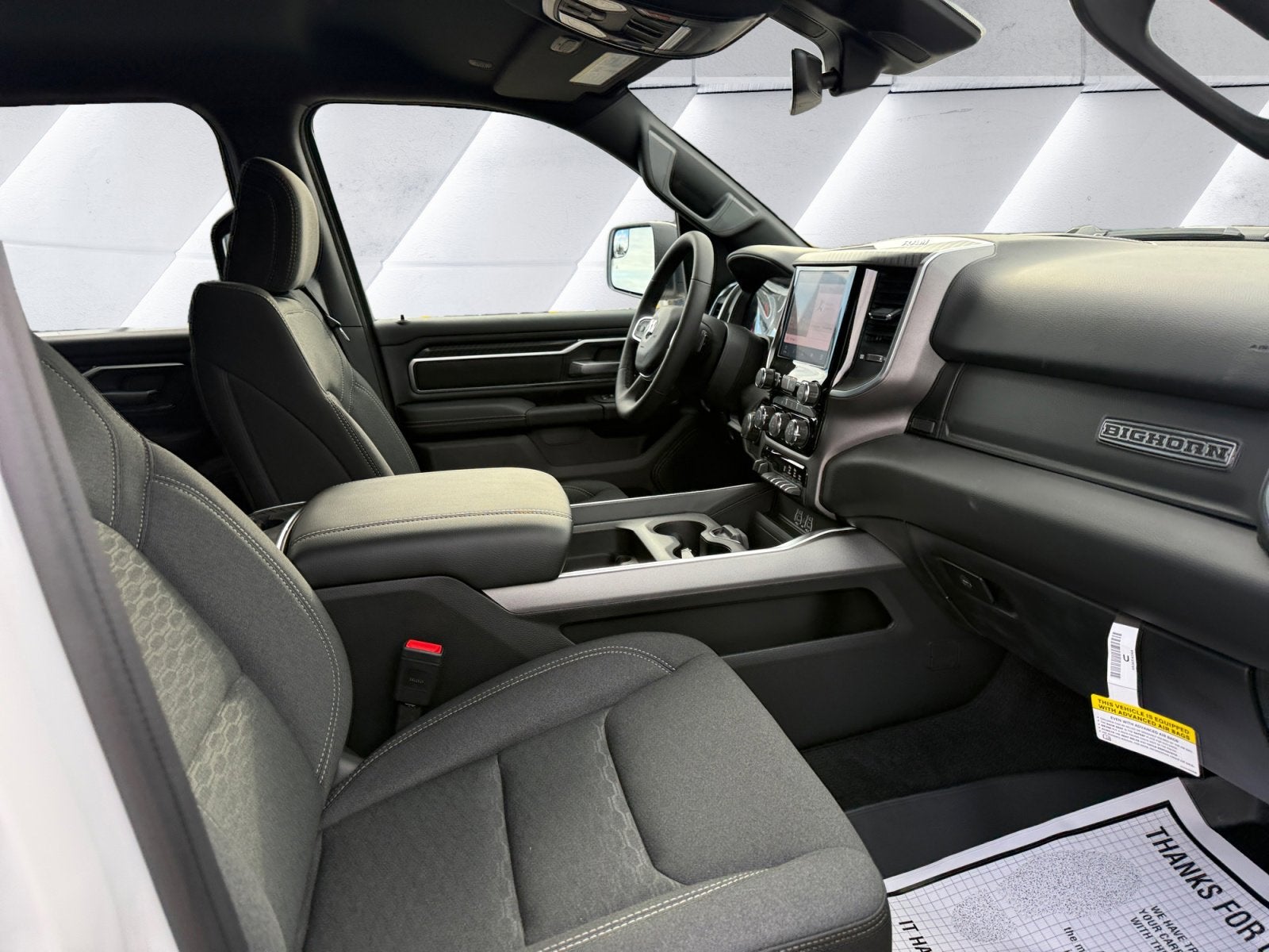 115V Auxiliary Power Outlet, 2nd Row in Floor Storage Bins, 3 Rear Seat Head Restraints, 4 Way Front Headrests, 400W Inverter, 6 Speakers, Auto High-beam Headlights, Auto Power-Folding Mirrors, Auto-Dimming Exterior Driver Mirror, Auto-Dimming Rear-View Mirror, Big Horn Level 1 Equipment Group, Black Exterior Mirrors, Black Interior Accents, Black Premium Power Mirrors, Body Color Door Handles, Body Color Fender Flares, Body Color Front Bumper, Body Color Rear Bumper with Step Pads, Body Color Tailgate Handle, Bucket Seats, Center Console Parts Module, Convex Wide-Angle Exterior Mirror Insert, Deluxe Cloth Bucket Seats, Exterior Mirrors Courtesy Lamps, Exterior Mirrors with Heating Element, Exterior Mirrors with Supplemental Signals, Front Seat Back Map Pockets, Full Length Floor Console, Glove Box Lamp, Grille Surround 1 Body Color Texture 1 Black, Heated Front Seats, Heated Steering Wheel, Leather Wrapped Steering Wheel, Manual Adjust 4-Way Front Passenger Seat, Power 2-Way Driver Lumbar Adjust, Power Adjust 8-Way Driver Seat, Power Adjustable Pedals, Quick Order Package 23Z Big Horn, RAM Grille Badge - Chrome, Rear 60/40 Folding Seat, Rear Center Armrest, Rear Dome with on/Off Switch Lamp, Rear Power Sliding Window, Rear Window Defroster, SiriusXM Radio Service, SiriusXM Satellite Radio, Sport Appearance Package, Steering Wheel Mounted Audio Controls, Sun Visors with Illuminated Vanity Mirrors, Universal Garage Door Opener.