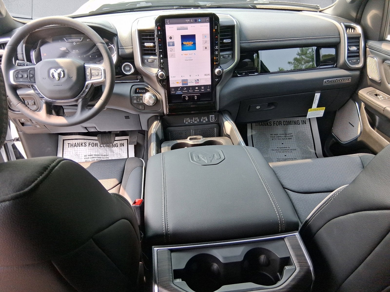 Featured Equipment: 1500 Laramie, 4D Crew Cab, 3.0L I6, 8-Speed Automatic, 4WD, Ivory White Tri-Coat Pearlcoat, Black w/Leather Trimmed Bucket Seats, 14.4 Touchscreen Display, 4G LTE Wi-Fi Hot Spot, Accent Color Door Handles, Accent Color Premium Power Mirrors, Accent Color Tailgate Handle, Alloy wheels, AM/FM radio: SiriusXM with 360L, Anti-Spin Differential Rear Axle, Apple CarPlay/Android Auto, Auto High-beam Headlights, Auto Power-Folding Mirrors, Auto-Dimming Exterior Driver Mirror, Automatic temperature control, Bed Utility Group, Black Exterior Truck Badging, Black Headlamp Bezels, Black Interior Accents, Black Painted Exterior Mirrors Caps, Black Tail Lamp Bezels, Body Color Front Bumper, Cluster 12 TFT Color Display, Connected Travel and Traffic Services, Connectivity - US/Canada, Convex Wide-Angle Exterior Mirror Insert, Dome Dual LED Reading Lamp, Dual-Pane Panoramic Sunroof, Exterior 115V AC Outlet, Exterior Mirrors Approach Lamps, Exterior Mirrors Courtesy Lamps, Front fog lights, Front Passenger Interactive Display, Fully automatic headlights, GPS Navigation, Grille Surround 3 Black Texture 2 Black, Harman/Kardon 19 Speaker Premium Sound, Heated front seats, Heated rear seats, Heated steering wheel, Integrated Center Stack Radio, Integrated Voice Command with Bluetooth®, Laramie Level 2 Equipment Group, Leather Trimmed Bucket Seats, LED Dome/Reading Lamp, MOPAR 4 Adjustable Cargo Tie-Down Hooks, Multi-Function Tailgate, Navigation System, Night Edition, Off-Road Information Pages, ParkView Rear Back-Up Camera, Pirelli Brand Tires, Power Deployable Running Boards, Power passenger seat, Power Tailgate, Proximity Approach/Departure Lamps, Quick Order Package 21H Laramie, Radio: Uconnect 5 Nav with 14.4 Display, Rain Sensitive Windshield Wipers, RAM Grille Badge - Black, RAM's Head Badge, SiriusXM Radio Service, SiriusXM with 360L, Sport Performance Hood, USB Host Flip, Ventilated front seats, Wheels: 22 x 9 Forged Aluminum.