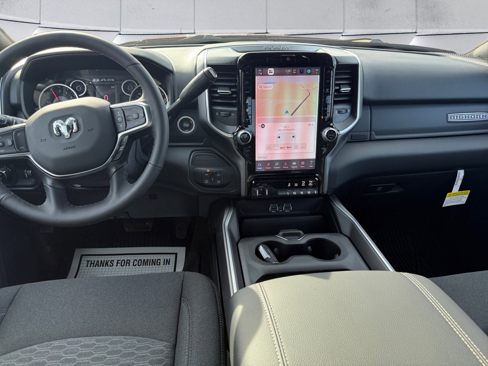 12 Touchscreen Display, 2 Way Rear Headrest Seat, 2nd Row in Floor Storage Bins, 4 Way Front Headrests, 40/20/40 Split Bench Seat, 4G LTE Wi-Fi Hot Spot, 9 Alpine Speakers with Subwoofer, Air Conditioning ATC with Dual Zone Control, Alexa Built-in, Anti-Spin Differential Rear Axle, Apple CarPlay, Auto Power-Folding Mirrors, Auto-Dimming Rear-View Mirror, Big Horn Level 1 Plus Equipment Group, Black Exterior Mirrors, Black Interior Accents, Body Color Grille-Surround, Connected Travel and Traffic Services, Connectivity - US/Canada, Disassociated Touchscreen Display, Dual Glove Boxes, Emergency Vehicle Alert System (EVAS), Exterior Mirrors Courtesy Lamps, Exterior Mirrors with Heating Element, Exterior Mirrors with Supplemental Signals, Foam Bottle Insert (door Trim Panel), Folding Flat Load Floor Storage, Footwell Courtesy Lamp, For Details, Visit DriveUconnect.com, For More Info, Call 800-643-2112, Forward and Reverse Utility Lights, Front Armrest with Cupholders, Front Center Seat Cushion Storage, Front Performance Tuned Shock Absorbers, Front Seat Back Map Pockets, Global Telematics Box Module, Glove Box Lamp, Google Android Auto, GPS Antenna Input, GPS Navigation, HD Radio, Heated Front Seats, Heated Seats and Wheel Group, Heated Steering Wheel, Hill Descent Control, Integrated Voice Command with Bluetooth®, LED Bed Lighting, Locking Lower Glove Box, Luxury Steering Wheel, Manual Adjust 4-Way Front Passenger Seat, Mirror Running Lights, MOPAR Deployable Bed Step, MOPAR Spray in Bedliner, Off Road Package, Off-Road Info Pages, Painted Front Bumper, Painted Rear Bumper, Power 2-Way Driver Lumbar Adjust, Power Adjust 8-Way Driver Seat, Power Adjust Mirrors, Power Heated Folding Telescopic Mirrors, Power Telescoping Mirrors, Power-Adjustable Convex Aux Mirrors, Premium Cloth 40/20/40 Bench Seat, Quick Order Package 2UZ Big Horn, Radio: Uconnect 5 Navigation with 12.0 Display, Rear 60/40 Folding Seat, Rear Dome with on/Off Switch Lamp, Rear Performance Tuned Shock Absorbers, Remote Start System, Remote USB Port - Charge Only, Selectable Tire Fill Alert, SiriusXM Radio Service, SiriusXM with 360L, Sport Appearance Package, Sport Decal, Steering Wheel Mounted Audio Controls, Storage Tray, Trailer Tow Pages.